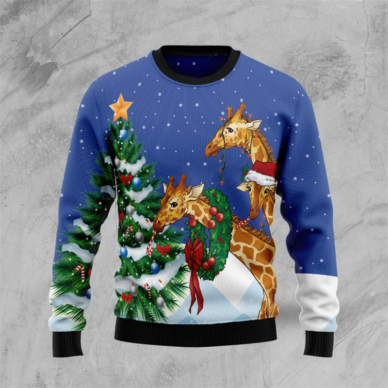 2026 New Funny Giraffe Graphic Ugly Christmas Sweater