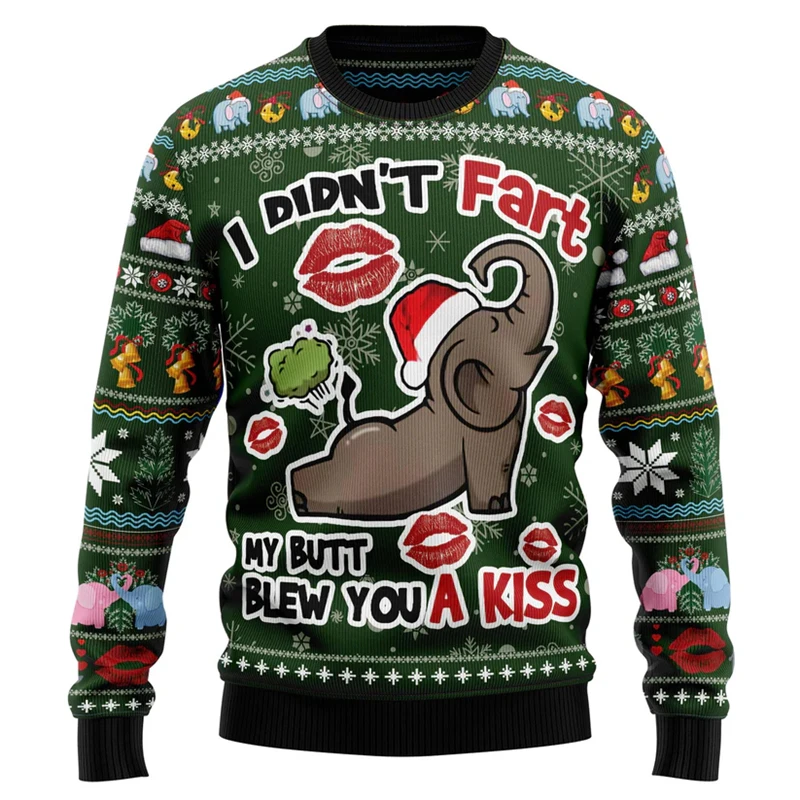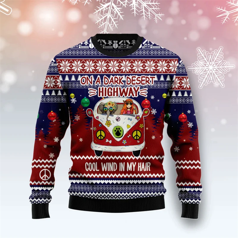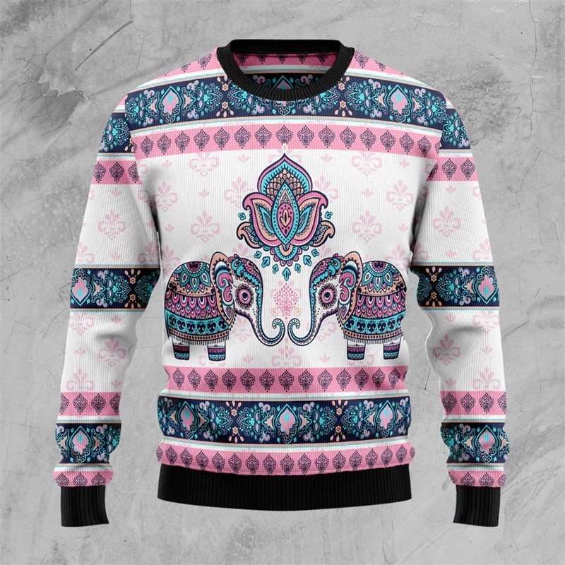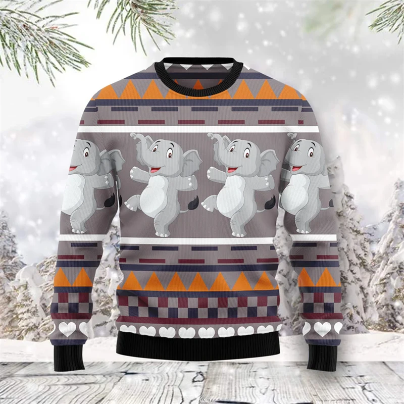 2026 New Retro Elephant Graphic Ugly Christmas Sweater Fashion Crew Neck 3D Printed Xmas Sweatshirts Loose Streetwear Pullovers