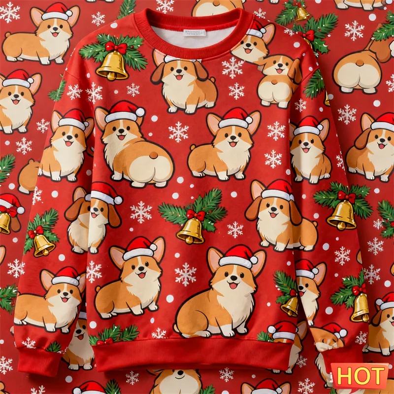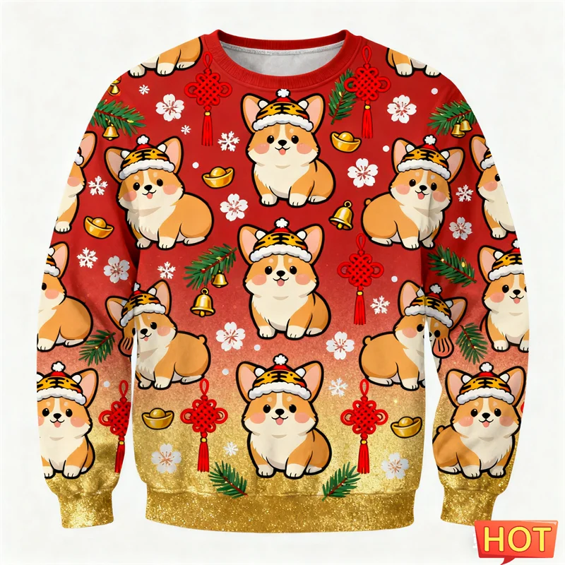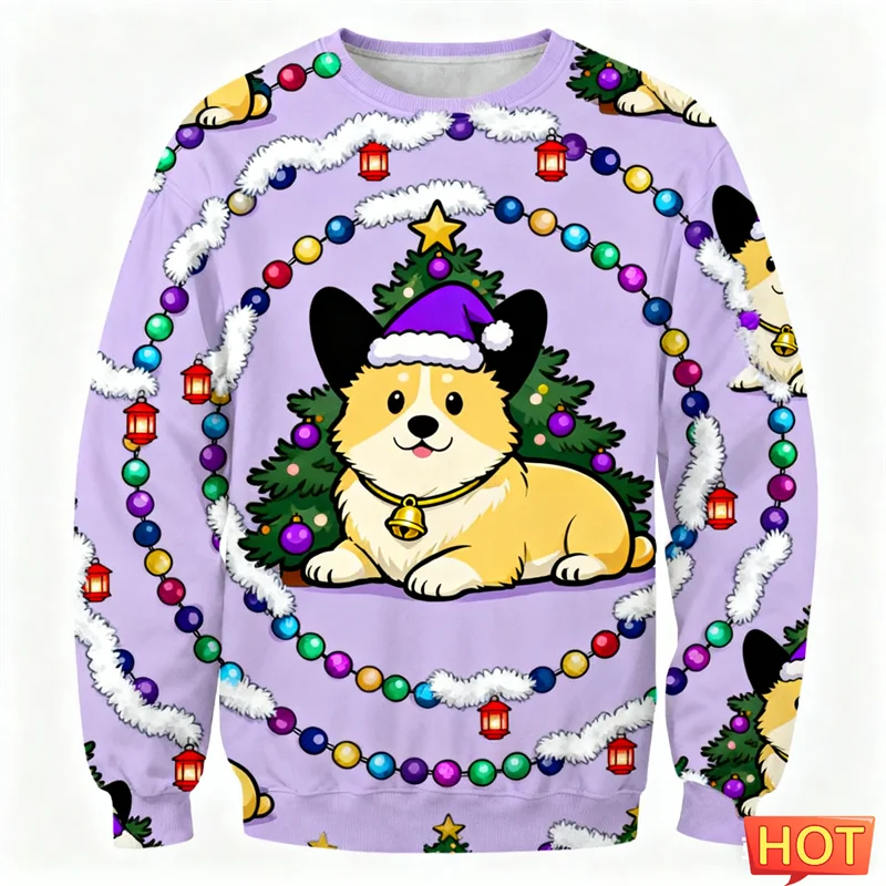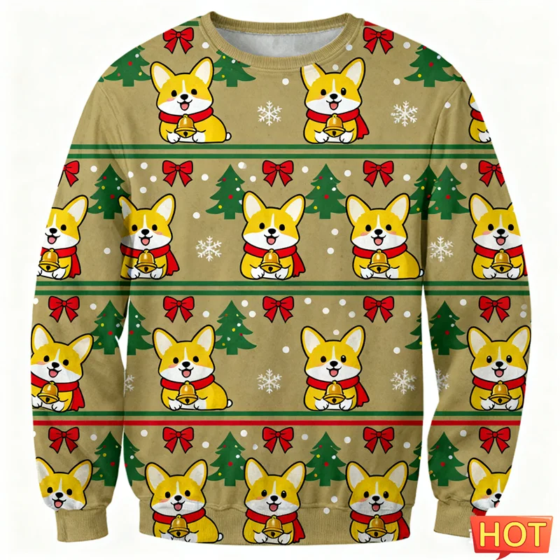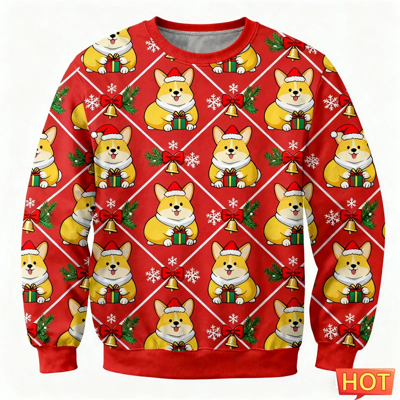 Cute Corgi Graphic Ugly Christmas Sweater For Men Trendy Crew Neck Dog 3D Printed Sweatshirts Loose Breathable Pullovers Tops